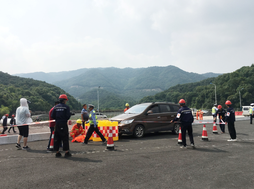 演練過(guò)程中指揮員決策果斷,指揮得當(dāng),各個(gè)小組在收到指令后,分工明確。救護(hù)組、搶險(xiǎn)組、安保組迅速趕赴現(xiàn)場(chǎng),通訊組在辦公室分別報(bào)120、110并向上級(jí)部門(mén)報(bào)告,現(xiàn)場(chǎng)三個(gè)小組同時(shí)在現(xiàn)場(chǎng)開(kāi)展救援。救援組對(duì)傷者進(jìn)行包扎、搶險(xiǎn)組立即疏導(dǎo)救援通道內(nèi)車輛撤離和分流、安保組用隔離帶、反光錐將事故現(xiàn)場(chǎng)和通行道路進(jìn)行隔離,等救護(hù)車到達(dá)后,把傷者送往醫(yī)院。在演練完滿結(jié)束后,各單位領(lǐng)導(dǎo)對(duì)本次演練取得的成效進(jìn)行了肯定,并針對(duì)道路救援演練,我們要時(shí)刻準(zhǔn)備著,應(yīng)對(duì)道路各種突發(fā)事件,特別是這些一邊道路建設(shè)一邊還通著車的項(xiàng)目高危區(qū)域,得到最有力的安全應(yīng)急保障。