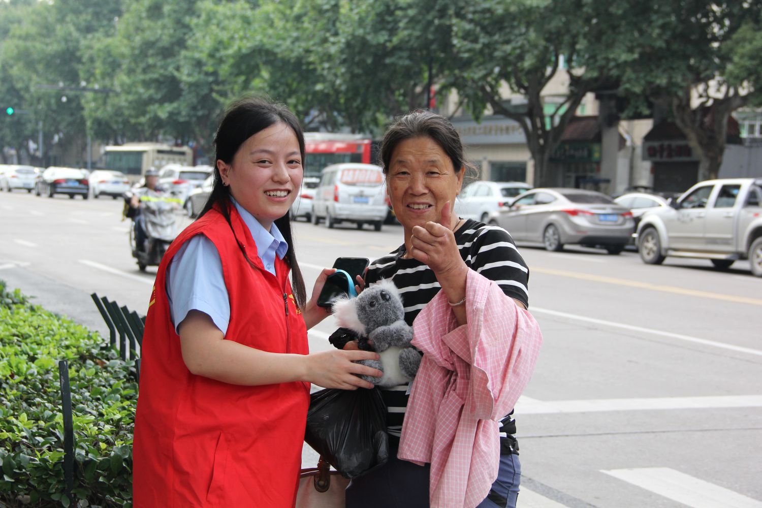 在過街路口,志愿者們為玩手機、慢通行的市民送上了考拉玩偶作為激勵,并進行了友情勸導;而對于文明快速通過斑馬線的市民,則贈送一把雨傘予以獎勵,意在為“閃電俠”再“充電”。還有的志愿者手舉指示牌組織行人統一通過,減少行人三三兩兩穿行的現象;有的志愿者對行動不便的老人和幼兒進行攙扶,保障通行安全。