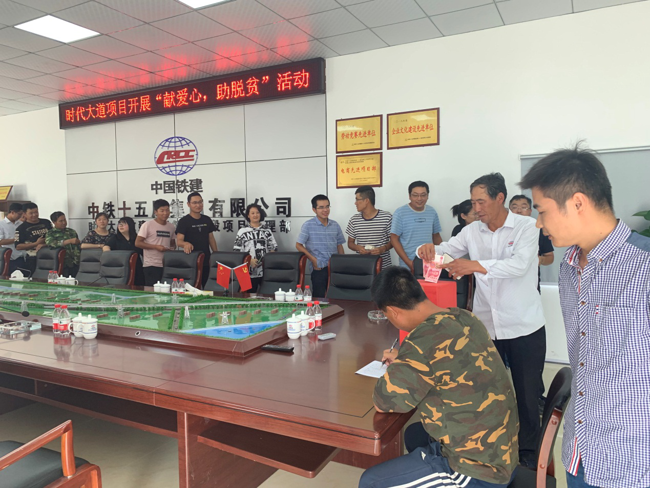近日,時代大道改建工程臨時黨支部積極響應(yīng)蕭山交通建管公司黨支部的號召,組織全體職工開展“獻愛心 助脫貧”捐款活動,向中國鐵建定點扶貧河北省張家口市萬全區(qū)、河北省張家口市尚義縣、青海省果洛州甘德縣進行愛心捐款。