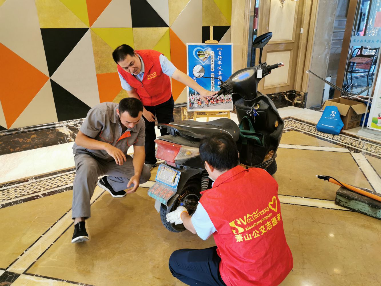 在現場,黨員為群眾介紹公交線路情況和服務新舉措,與群眾坦誠交流,就線路優化、乘車體驗、服務滿意度等事項進行問卷調查,征集合理化意見建議16條;發放《應急自救》《斑馬線互敬》《垃圾分類》等宣傳冊80余份,引導群眾樹立安全出行和文明守法意識;幫助群眾下載杭州公交APP,指導20余人次熟練操作軟件;IC窗口工作人員為群眾提供公交卡充值服務15人次,熱情答復群眾相關業務咨詢;公共自行車修理師傅為群眾義務維修自行車、電瓶車10輛次;最后,黨員在小區門口開展“斑馬線禮讓2.0版”活動,前往人行橫道勸導駕駛員文明禮讓行人,引導行人遵守交通法規,共同營造迎亞運文明出行好風尚。