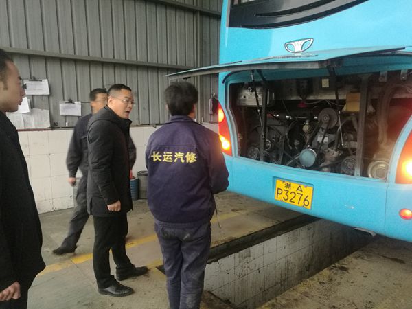 長運公司為切實做好投入2020年元旦、春運車輛的技術、安全性能狀況的保障工作,12月26日,公司副總經理、修理分公司經理潘國華帶領技術管理部、安全保衛部相關負責人開展春運節前安全生產專項檢查。