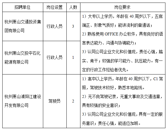 杭杭州蕭山交通投資集團(tuán)因發(fā)展需要,公開(kāi)招聘工作人員若干名,現(xiàn)將有關(guān)事項(xiàng)公告如下: