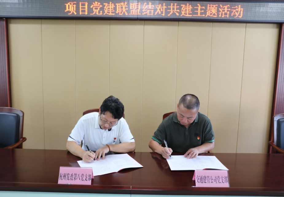 為落實杭州市委“干好一一六、當好排頭兵”決策部署和市委、區委組織部關于黨建品牌創建要求,進一步鞏固深化“不忘初心、牢記使命”長效機制,確保重大項目穩步推進,8月14日下午交投集團交通建管公司黨支部與杭州市發改委第八黨支部進行“項目黨建聯盟”結對共建,開展活動。杭州市發改委第八黨支部全體黨員、交通建管公司全體黨員參加活動。
