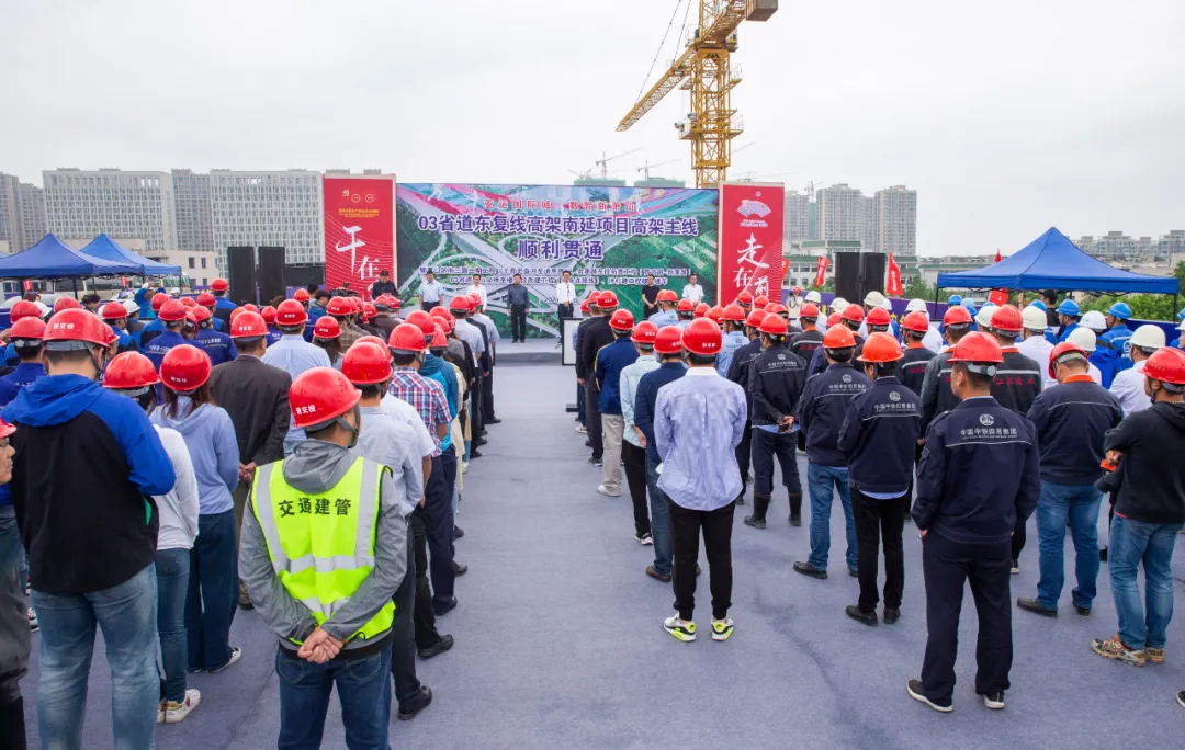 區委副書記、區長章登峰宣布03省道高架主線順利合龍;集團黨委書記、董事長祝關翔介紹 03 省道東復線高架南延工程進展情況;區政府辦公室、22688 推進辦、區住建局、區交通運輸局、新街街道、新塘街道主要負責人,集團領導班子及中層干部,03 省道東復線高架南延工程、時代大道改建工程、時代高架南延工程參建單位代表參加儀式;儀式由副區長方軍主持。