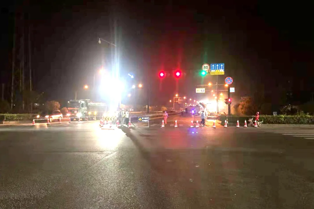 為加快工程建設步伐,最大程度地減緩交通壓力,確保工程施工安全,公司嚴格按交通組織方案,應地制宜,分時施治,對建設四路改造路段采用避開早晚高峰,從上午10:00至下午17:00時間段施工。風情大道改造路段則采用深夜施工,從晚上21:00-凌晨5:00時間段通宵施工,對路面進行瀝青鋪筑。