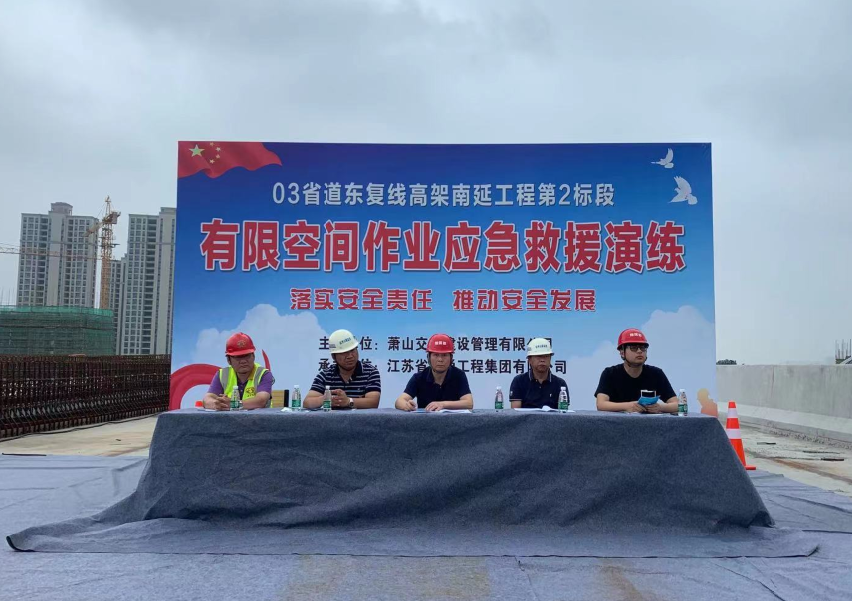 為貫徹落實“安全第一,預防為主,綜合治理”的工作方針,根據《中華人民共和國安全生產法》、《浙江省安全生產監督管理條例》、《03省道東復線高架南延工程第2標段事故應急救援預案》文件要求,交通建管公司于2021年6月28日上午在03省道東復線高架南延工程項目部組織了有限空間作業應急演練。