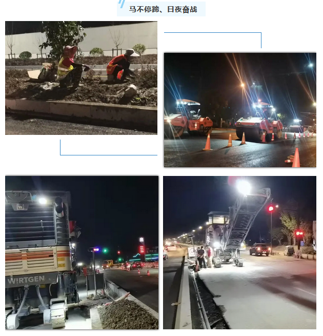結合“千萬工程”建設現(xiàn)場會和項目完工驗收等時間節(jié)點,倒排施工計劃,將剩余施工量進行合理統(tǒng)籌,科學合理排布施工時序,盡可能推動多線、并線作戰(zhàn),形成路面修復與標志標線、道路兩側路面回填與綠化移植、電力井提升與瀝青攤鋪等同步施工。