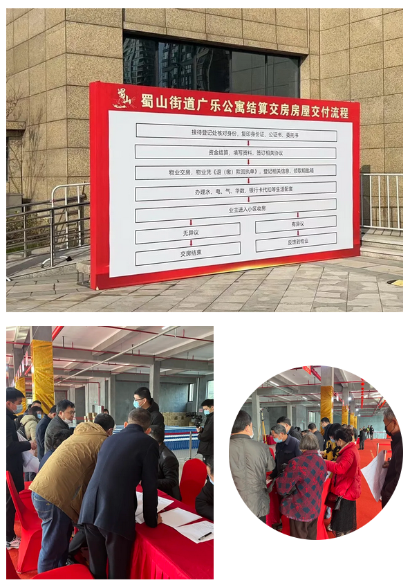 為迎接回遷戶回家,確保交房工作順利進行,交投集團聯合蜀山街道、萬豐物業、廣樂公寓社區,提前做好各項交房準備工作。第一時間成立了分房工作組、交款組、信息錄入組和鑰匙發放組,在現場布置了水、電、燃氣、寬帶繳納、移動和華數辦理處。通過定點定人定責,各個小組之間相互配合,為回遷安置戶的歸家提供力所能及的服務。