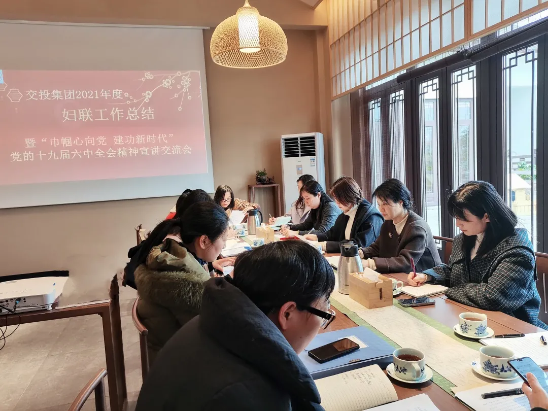 1月21日下午,集團婦聯召開2021年度婦聯工作總結暨“巾幗心向黨  建功新時代”黨的十九屆六中全會精神宣講交流會。集團婦聯主席樓微,下屬各婦女組織負責人參加會議,會議由婦聯副主席陸志萍主持。