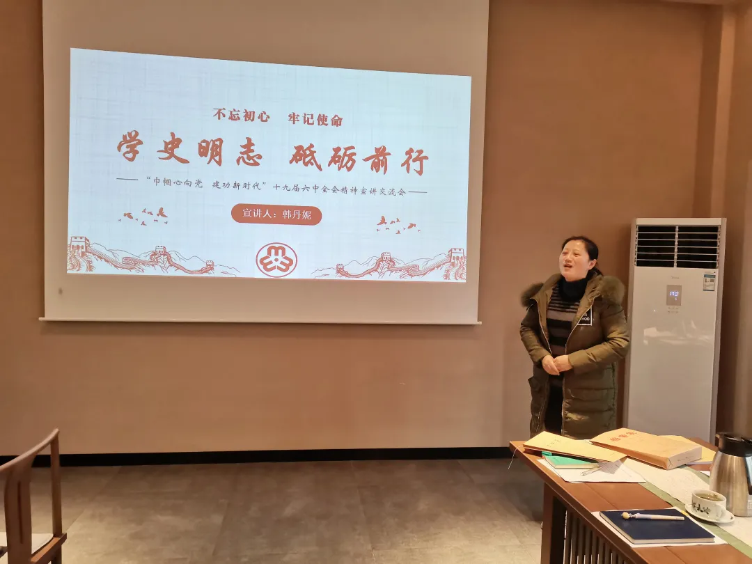 與會人員學習了《從黨的百年奮斗重大成就和歷史經驗中汲取智慧力量》文章,并聽取浦陽江開發公司婦女組織負責人韓丹妮宣講《學史明志 砥礪前行》黨史故事。