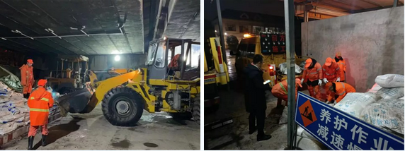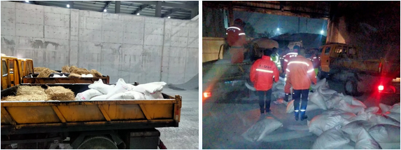 路橋工程公司立即啟動應急機制,成立應急抗雪搶險小分隊,25位小分隊成員放棄春節在家休息, 24小時在拌和中心候命,人、機、料集結到位,聞令而動,隨時待命。共組織預警搶險車5輛、鏟車3輛、工業鹽5噸、防滑草袋2000只,主要保障時代大道、塘新線及路橋各在建施工路段的道路安全?!?/p>