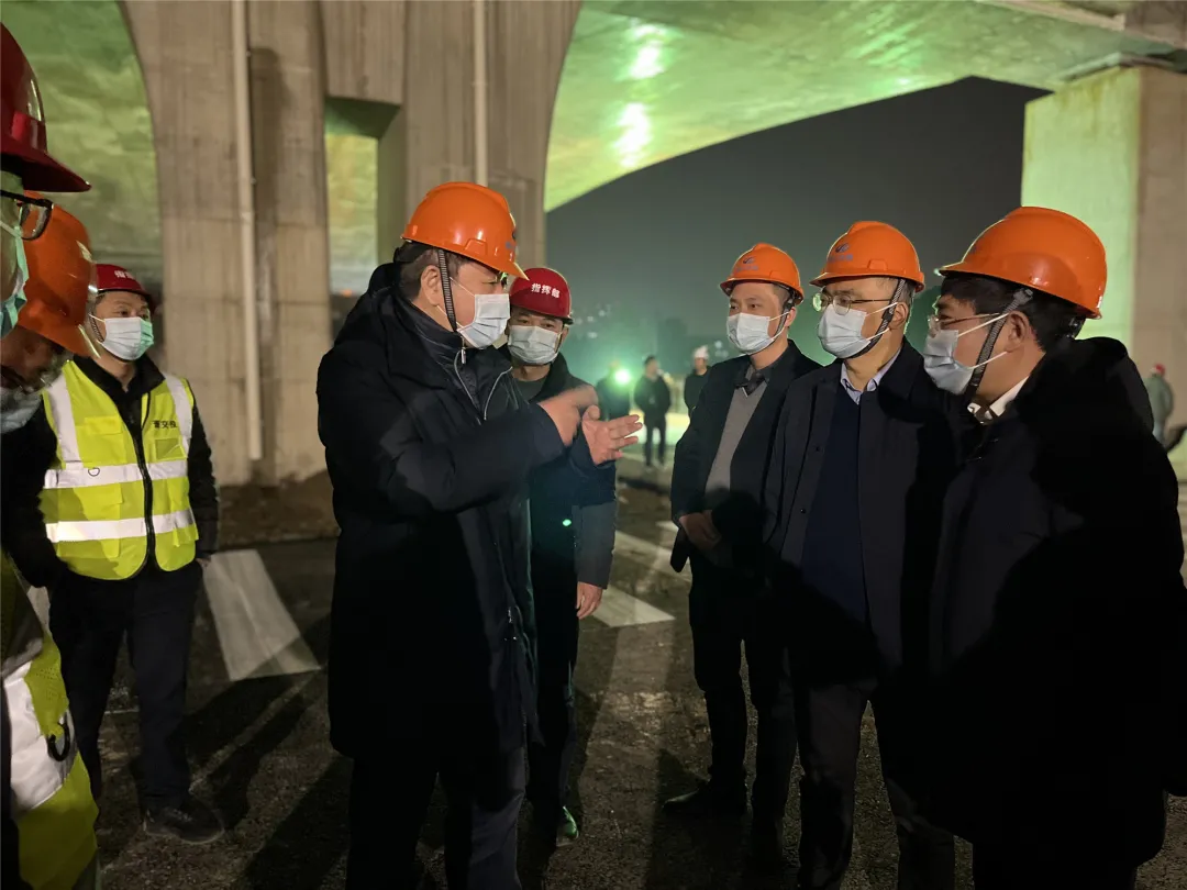 2月14日晚,副區長方軍一行前往03省道東復線高架南延工程現場檢查地面道路施工情況。集團黨委書記、董事長夏柏林,黨委副書記、總經理徐寧軍,黨委委員、副總經理金文華,各參建單位負責人參加。
