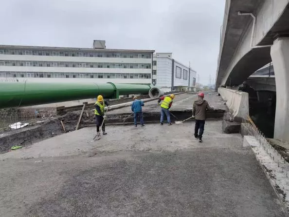 春節到現在主要開展北塘河橋左幅主線橋護欄和左幅輔道橋面系、彩虹互通花木城東區臨時保通道路破除、部分路段的平側石、雨水井、主線和人行道部分水穩、瀝青攤鋪、智能桿燈安裝等施工。