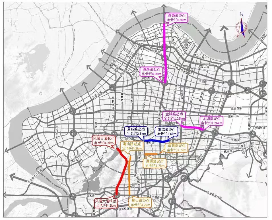 (湘湖隧道-亞太路)長(zhǎng)約4.3公里,車(chē)道寬約57米。