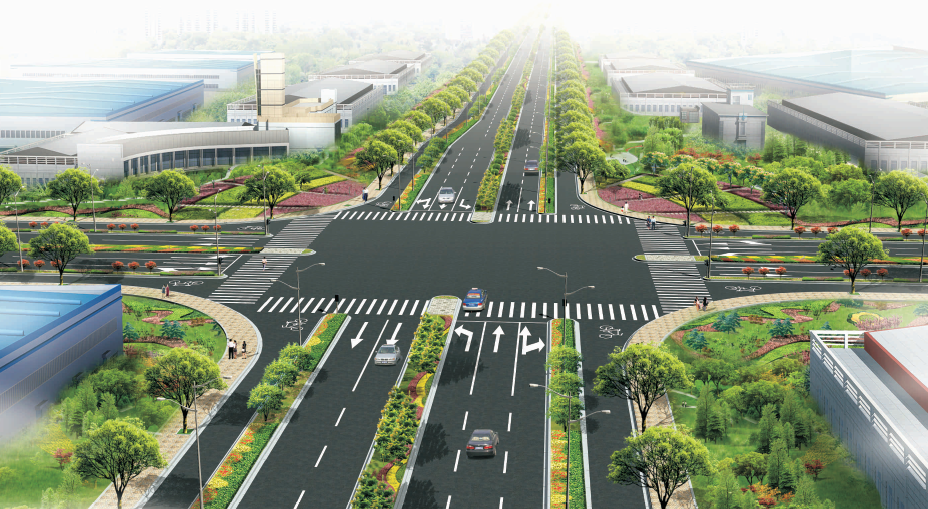 (新城路以東500米-104國(guó)道以東100米)長(zhǎng)約1.26公里,車(chē)道寬約53米。