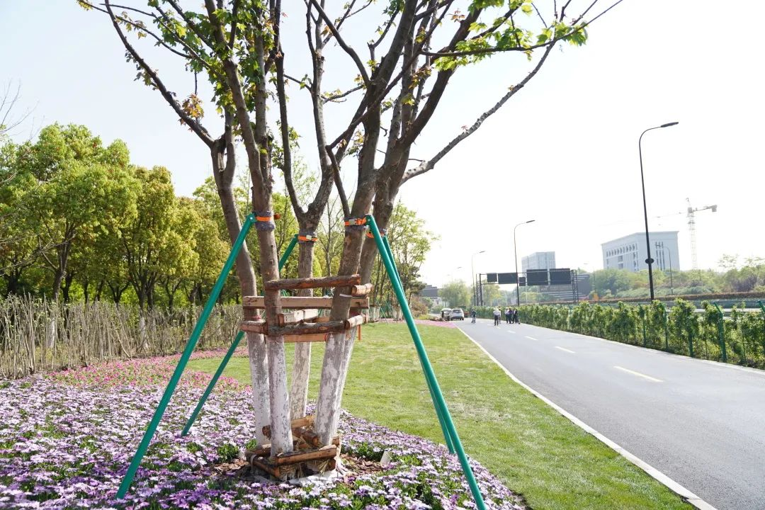 工程位于機場收費站東北面,長440米 ,實施面積約18000㎡,現(xiàn)正在林下花帶種植中。