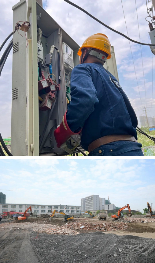 夜晚,對接供電公司連夜調度應急照明車,工人們繼續加班加點。