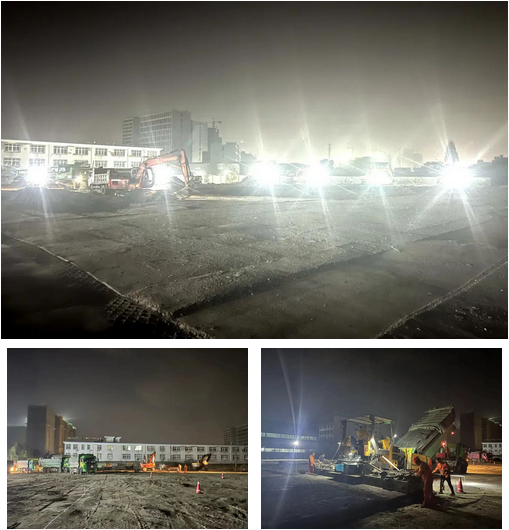 白天,施工人員頂著30度的高溫進行施工,全力以赴保障施工進度。