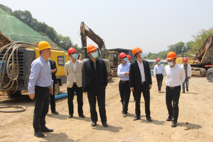 4月21日,集團黨委書記、董事長夏柏林,黨委委員、副總經理金文華一行檢查礦山治理項目,浦陽江開發公司負責人陪同。