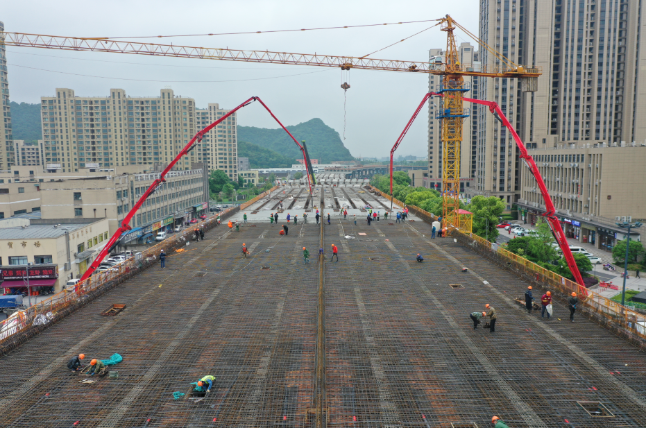 本項目第七聯箱梁頂板澆筑完成,標志著4月30日前完成先行通車段高架主線(起點至東旭街)結構貫通,完成了本項目車流量最大、周邊小區(qū)最密集、人員最集中區(qū)域的建設,為早日實現項目全線貫通的目標打下了堅實的基礎。