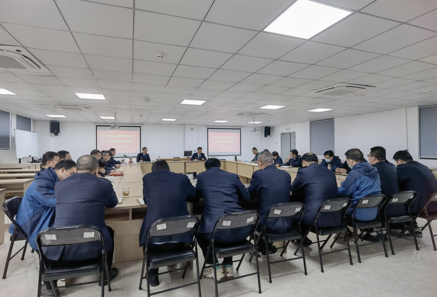 近日,蕭山公交在北干停保基地培訓中心組織召開了三月份安全生產(chǎn)、消防、反恐工作會議。公司總經(jīng)理助理周國慶,各車隊、各相關(guān)部室及分公司安全負責人、安全管理員和相關(guān)工作人員參加。會議由安保部經(jīng)理董海主持。