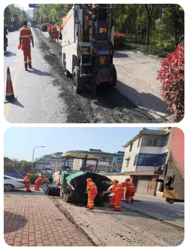 為盡快還路于民,施工隊統籌調配銑刨機、壓路機、攤鋪機等數臺專業公路養護機械設備,出動16人次配合施工有序運行,力爭當日銑刨當日恢復,確保汛期前完成大周線的瀝青病害處理。