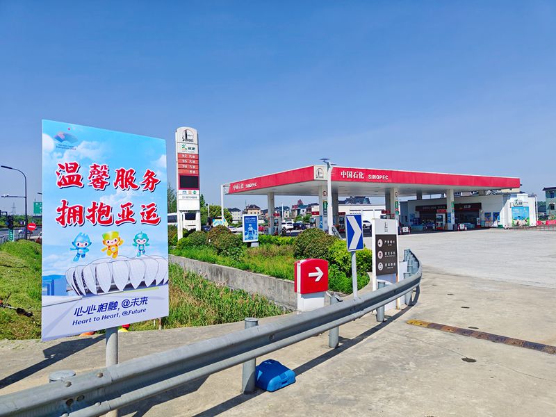 為喜迎亞運盛會,慶祝“五一”國際勞動節的到來,同時向外地來杭旅客宣傳杭州特色旅游文化,杭州蕭山交投中石化能源有限公司攜手中國石化杭州蕭山支公司在交投能源公司下屬建盈加油站北站開展“溫馨服務 擁抱亞運”主題勞動節活動,為小長假期間到站加油的客戶送上一份具有杭州文化特色的伴手禮。