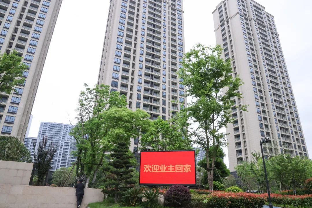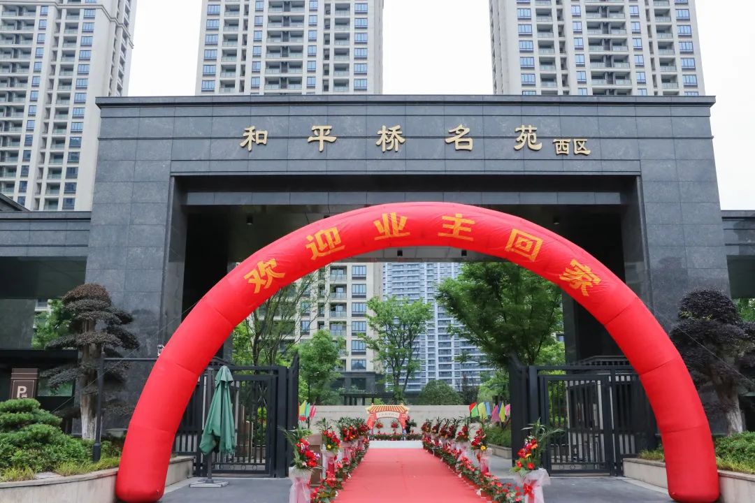 交房現場,熱鬧非凡,居民們在一聲聲道賀聲中,高高興興地辦手續、領鑰匙。
