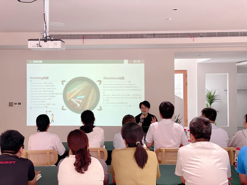 英語培訓(xùn)由公司綜合辦公室副主任蔡鳴明進(jìn)行授課,蔡主任是英語翻譯專業(yè)出身,持有英語專業(yè)八級(TEM8)和中學(xué)英語教師資格證。培訓(xùn)充分結(jié)合迎亞運工作要求和公司崗位工作服務(wù)需求,分別從問候問路、美麗杭州、運動杭州、加油站實用英語四個板塊展開,通過中英文雙語進(jìn)行授課。課上,大家積極互動,通過跟讀、跟練和情景演繹激發(fā)了對英語學(xué)習(xí)的興趣,有效掌握了亞運英語服務(wù)的技巧。