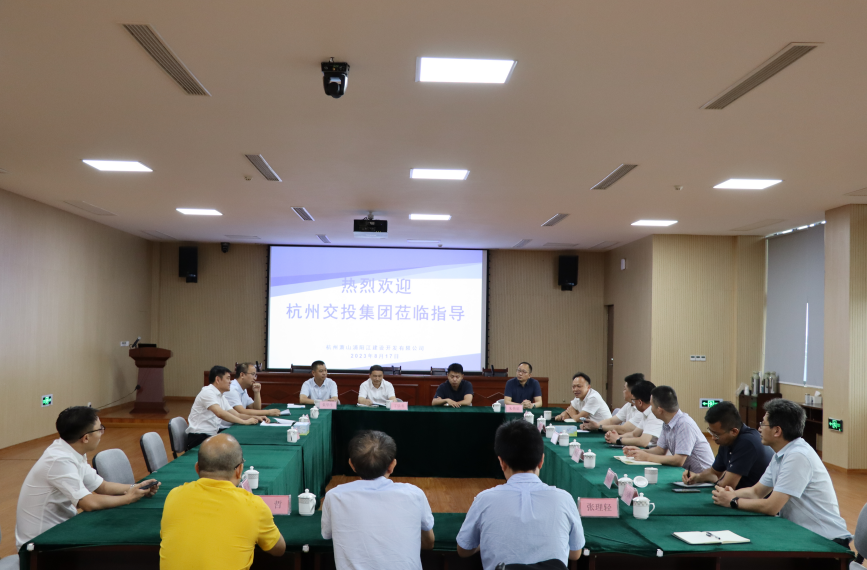 8月17日下午,杭州市交投集團黨委書記、董事長章舜年、交通部公路科研所副院長李萬恒、四川新路橋公司董事長劉國建一行對蕭山交投集團進行調研考察。集團黨委副書記、總經理韓朋朋,副總經理鐘波及浦陽江開發公司總經理朱華生等陪同。
