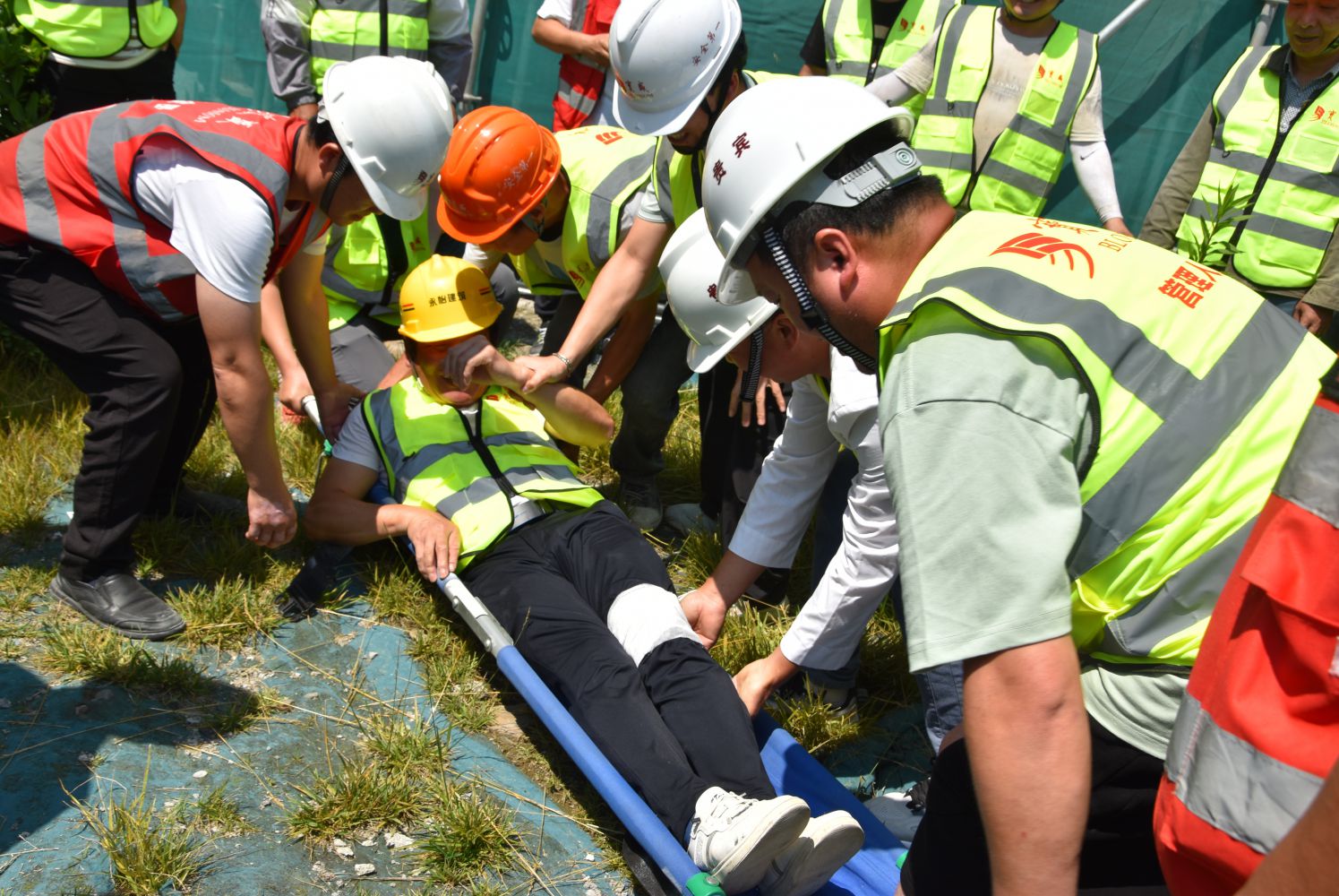 此次應急預案演練從實戰角度出發,主要模擬了施工作業時易發的突發火災和高處墜落場景,涉及火場事故報告、人員應急疏散、通訊聯絡、救援受傷人員等各個環節,達到了預期效果。