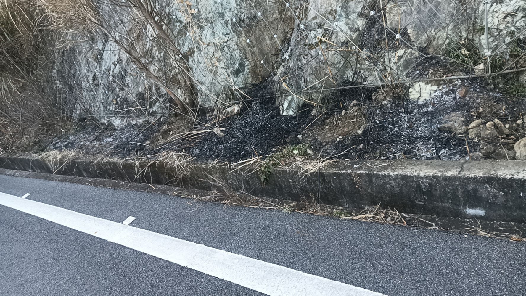 當日,養(yǎng)護隊員巡邏林道時,隊員吳德平、樓志德、陳吾祥、鐘楊敏銳發(fā)現(xiàn)路邊排水溝有縷縷灰煙飄散。他們憑多年經(jīng)驗,立即停車查看,發(fā)現(xiàn)枯葉堆下隱蔽火點已引燃周邊雜草。隊員們用標準流程快速處置林道火源,啟動應急預案:1.立刻上報火情;2.使用隨車滅火器壓制火;3.用土石壓制滅火。全程僅用3分鐘有效控制火情,過火面積不足3平方米。