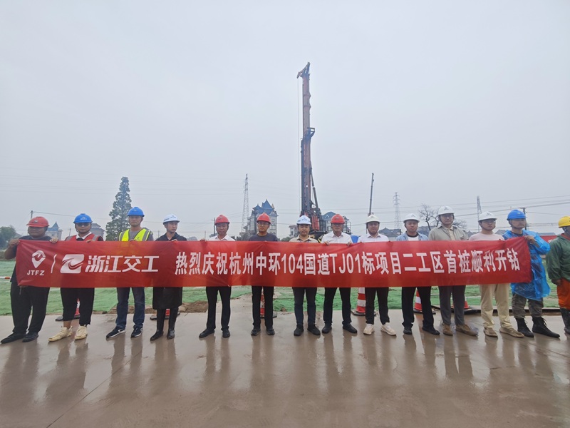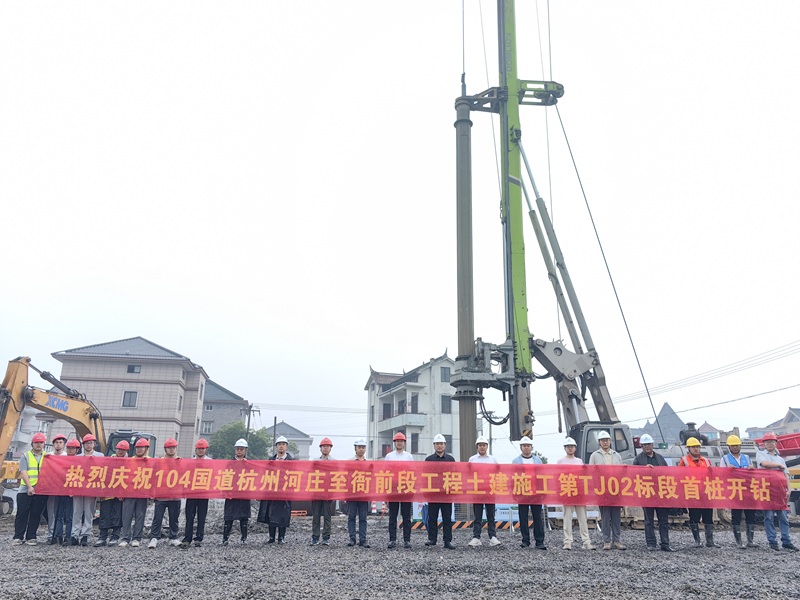 今天上午,104國道杭州河莊至衙前段工程第TJ02標首樁、第TJ01標二工區(qū)首樁開鉆,標志著104國道杭州河莊至衙前段工程全面開工。