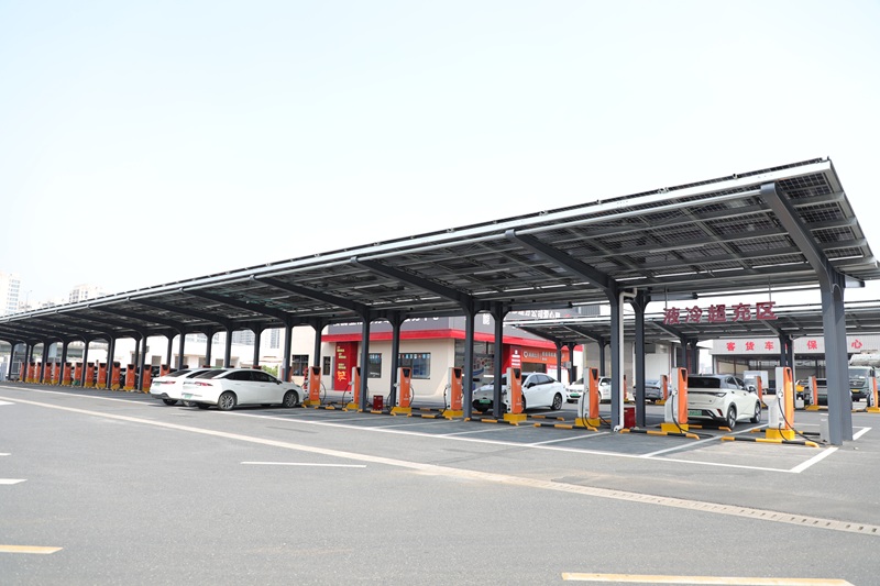 愛心驛家充電配套設施分兩期建設,共有100個快速充電樁,其中一期34個充電樁已啟用,包括快充28個、超充6個,并配建配電站1座;二期66個充電樁計劃于今年4月底完成建設并投入使用。愛心驛家采用國內領先的1000V碳化硅模塊、480KW“直流充電堆”等高端技術,其中液冷超充區最快可實現10鐘內充滿(從20%充至80%)。