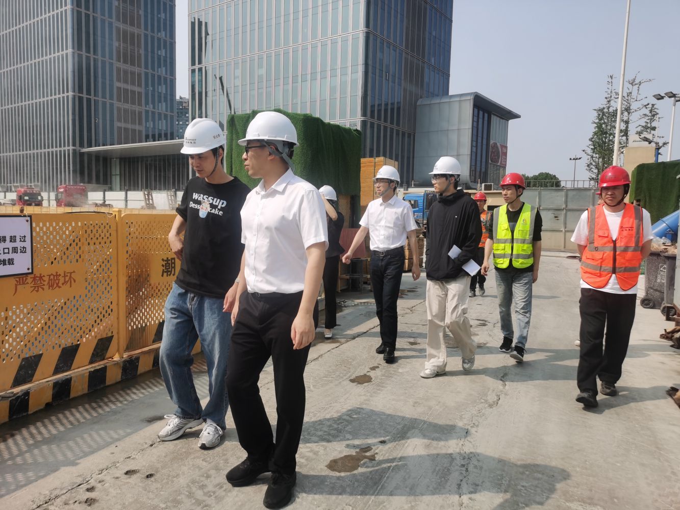 黨支部委員、副總經理沈偉才帶隊檢查彩虹天空之城。