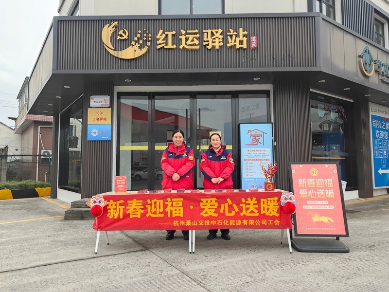 2月10日,春運返鄉高峰之際,交投能源公司工會在建盈村加油站愛心驛家開展“新春迎福 愛心送暖”活動,為返鄉務工司乘人員送上新春祝福。