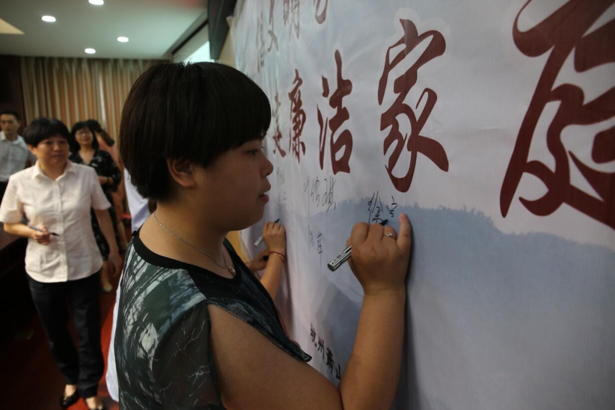 會(huì)議對(duì)本次“倡文明家風(fēng)·建廉潔家庭”活動(dòng)進(jìn)行了介紹和動(dòng)員,向干部家屬發(fā)放了“廉政賬本”和《顏氏家訓(xùn)》書本,并組織干部家屬在“倡文明家風(fēng)·建廉潔家庭”承諾板上簽名。家屬代表圍繞如何建設(shè)文明廉潔家風(fēng),幫助家人遠(yuǎn)離誘惑、杜絕腐敗,筑起家庭反腐倡廉的堡壘作了發(fā)言。