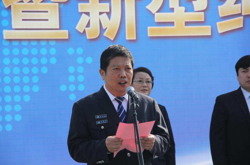 區(qū)政府辦公室副主任邵岳橋宣布首條準(zhǔn)快速公交開(kāi)通。