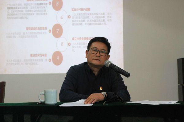 課上,公司黨總支書記來妙明深刻分析了十九大報告的內(nèi)容,緊緊圍繞習(xí)近平新時代中國特色社會主義思想這個主線,闡述了十九大報告的特點(diǎn)、重點(diǎn)和亮點(diǎn),深入淺出地對黨的十九大提出的新思想、新論斷、新要求、新任務(wù)作了全面系統(tǒng)而又突出重點(diǎn)的解讀,表明十九大報告宣告了中國新時代的到來,同時希望全體黨員要牢記使命和責(zé)任,不斷堅定理想信念,加強(qiáng)作風(fēng)建設(shè),爭做一名合格的共產(chǎn)黨員。