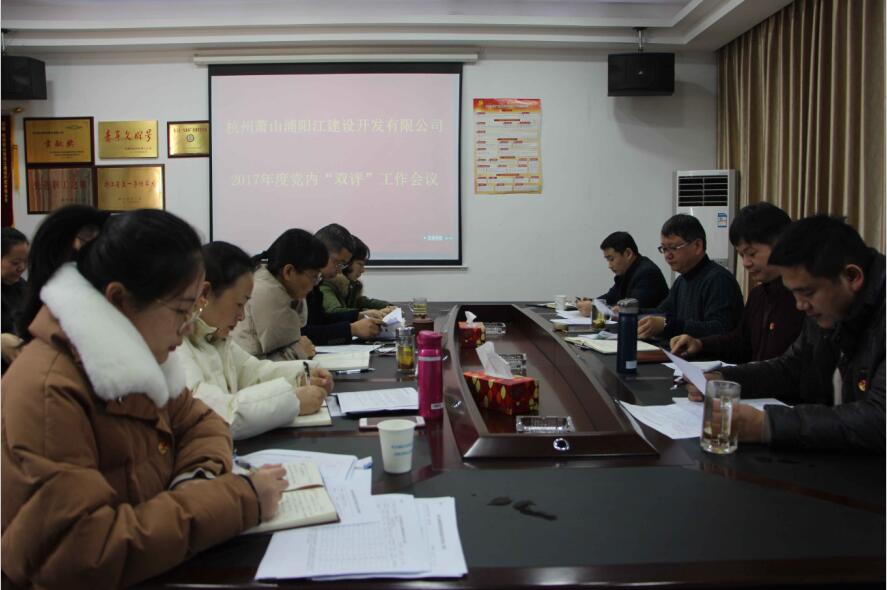 1月15日上午,浦陽江開發公司黨支部召開2017年度黨內“雙評”工作會議。支部全體黨員、群眾代表參加會議。會議由支部委員、副總經理丁樂冬主持。會上,丁總傳達了《關于在“兩學一做”學習教育中廣泛開展向王一成同志學習的通知》精神。黨支部書記王光明為全體與會人員上黨課,并作“雙評”工作動員,同時報告一年來的工作情況,提出下一年度工作思路和計劃。王書記結合2017年度“雙評”工作會議提出三點要求:一要加強學習,用理論武裝頭腦;二要辦事公道,讓權力在陽光下運行;三要提高認識,理解雙評工作要求。隨后,支部全體黨員對2017年工作作自我小結,并對2018年工作作出公開承諾。最后,支部全體黨員、群眾代表對黨組織及黨員進行民主評議。