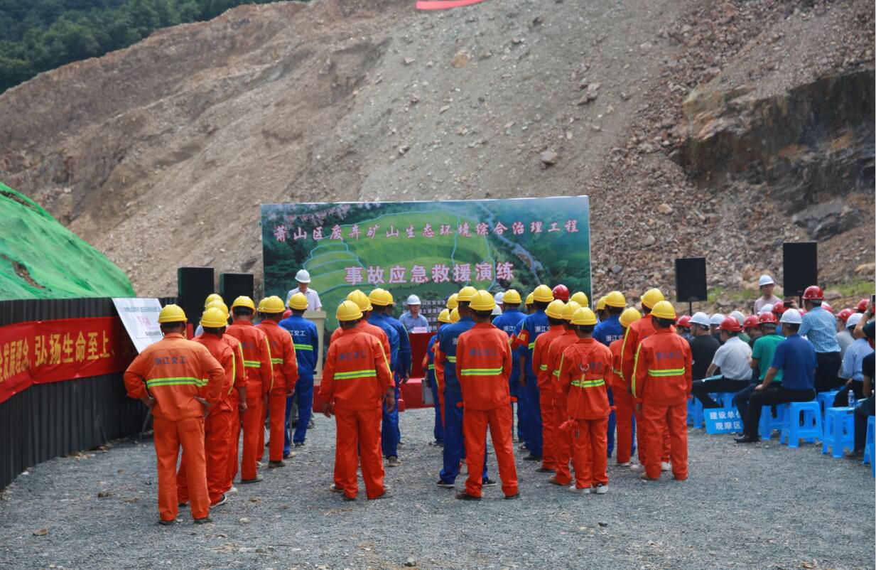 為深入貫徹“安全第一、預防為主”方針,提高礦山突發事件應急處置能力,結合第17個安全生產月主題,6月21日下午,由區安監局、國土蕭山分局、進化鎮和蕭山交投集團聯合舉辦的廢棄礦山生態環境綜合治理工程事故應急救援演練活動,在進化鎮湯山礦生態環境綜合治理工程現場舉行。涉及礦山治理和地質災害防治的相關鎮街分管負責人,以及建設、施工、監理單位相關人員參加活動。