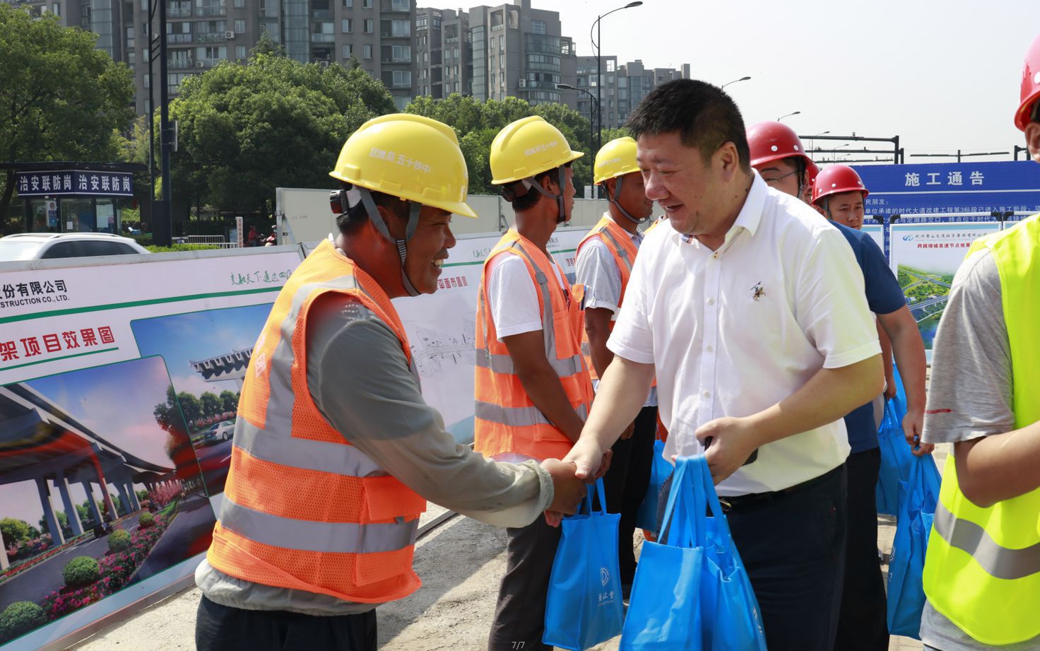 區政協主席洪松法、副區長吳煒煒一行到義橋作業區項目施工現場,對一線工人進行了高溫慰問,發放了夏季防暑慰問品,并叮囑大家做好防暑降溫措施,牢記施工安全。集團黨委副書記、副總經理虞國燦,建管公司、浦陽江公司負責人參加慰問活動。