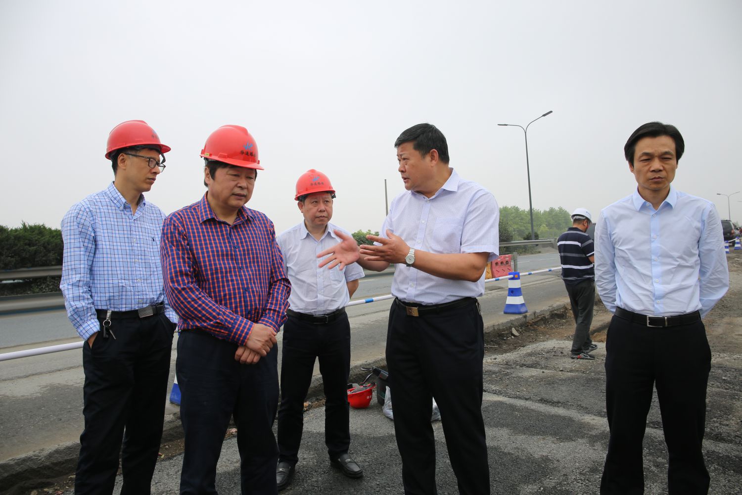 4月25日上午,區人大常委會副主任董祥富一行調研紅十五線改建工程。區交通運輸局黨委書記、局長李書春,集團黨委書記、董事長祝關翔,以及建設、施工、監理單位負責人參加調研。